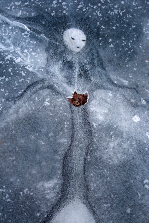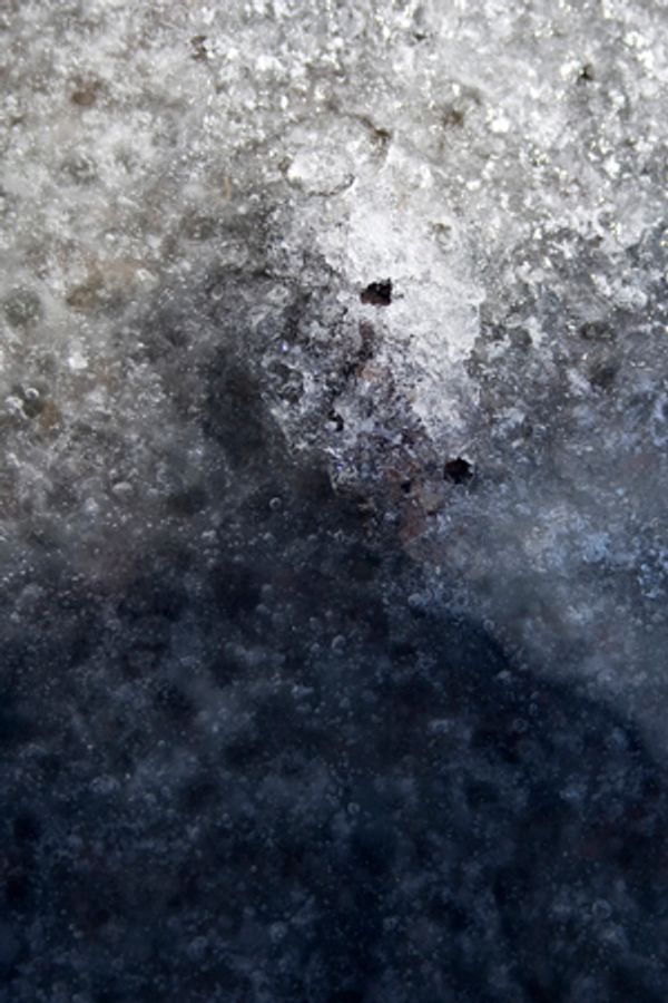 Holmes works seasonally, tracking the weather. Different temperatures demand independent responses to materials and approaches. "Ice follows the freezing mark of Winter, stone and steel the exterior work space of Summer. Spring begins the search for materials and Fall settles all debts, emotional, physical and